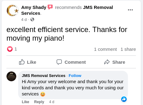 JMS Removal Services are a well established removals company with consistent 5 star reviews.